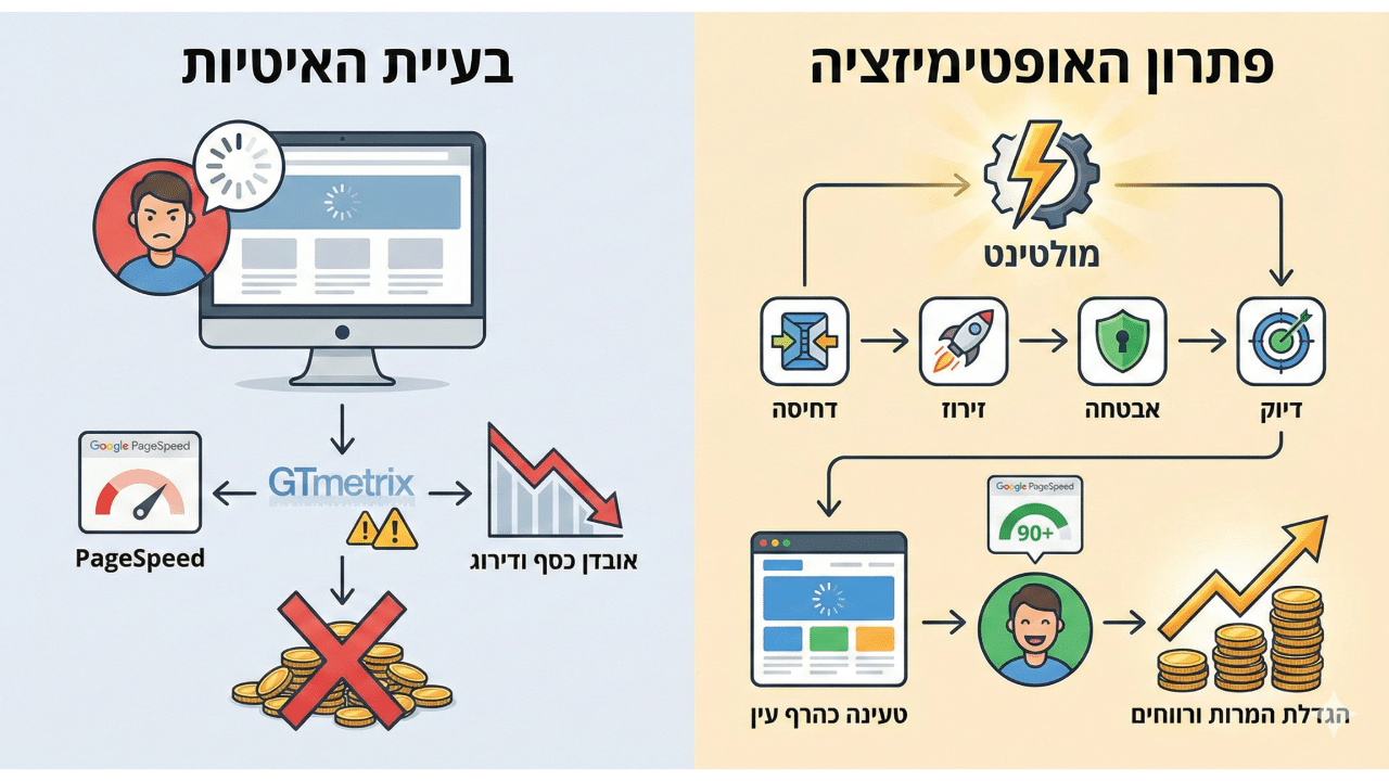 בכל שנייה שהאתר שלכם מתעכב אתם מאבדים כסף, אמון ו‑SEO.